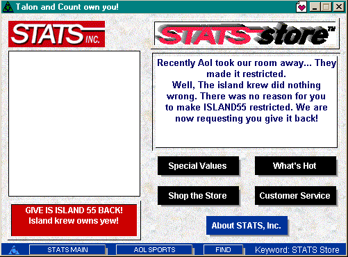 Adopting a black-is-white approach to damage control, AOL placed a message on their exit screen that night touting the security of their shopping areas.Tell that to the hackers who hit the STATS Store.