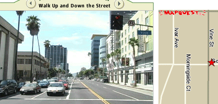 I'm still amazed. Someone drove a van across the United States, photographing every storefront they could find. A year later, they dumped the images on the web, cross-referencing them with the yellow pages.Let's visit the District Court office in Los Angeles! Molly's Charbroiler by Hollywood and Vine! Move your mouse over the pictures, and more pictures show the view changing as you walk down the street. Do it fast, and it's like a movie!
