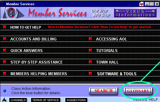 AOL provides an on-line glossary, which defines computer terms for confused users of AOL's customer service offerings.