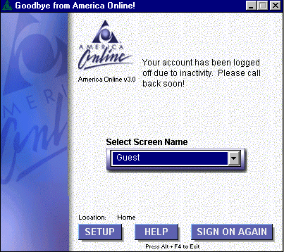 Here's a theory for ya... I have seriously come to believe that AOL cranks up the annoying "idle" timer on those users whose online time is longer then their average users online time. I tend to be online for long periods of time (mostly on the web) but NOT buying all the stupid products that they throw ads at me for. The theory is that this is a deadly combination for which they try to get rid of you by annoying you with the "idle timer" ...but then to deny it's existence is proposterous!!I swear that since I had my little tiff with AOL last week, the "idle" timer goes off every 10 minutes. The first time I called to complain about it (about 3 or 4 months ago) it seemed like they backed it off for a while... I guess I really got them pissed off this time! ;-)) hooray for me!!!